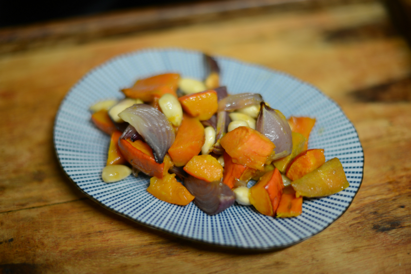 Probiert doch mal Butternusskürbis mit Zimtblüte: Kürbis schälen, in Würfel schneiden und in eine feuerfeste Form geben. Mit Olivenöl, Ahornsirup, gemahlener Zimtblüten und Meersalz würzen, dann gut mischen (am besten mit den Händen).
